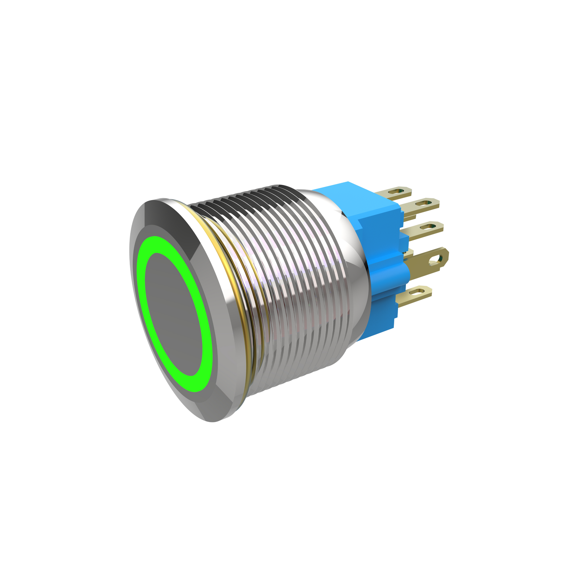 - Design: Circular metallic face with a bright green illuminated ring for clear visual feedback
