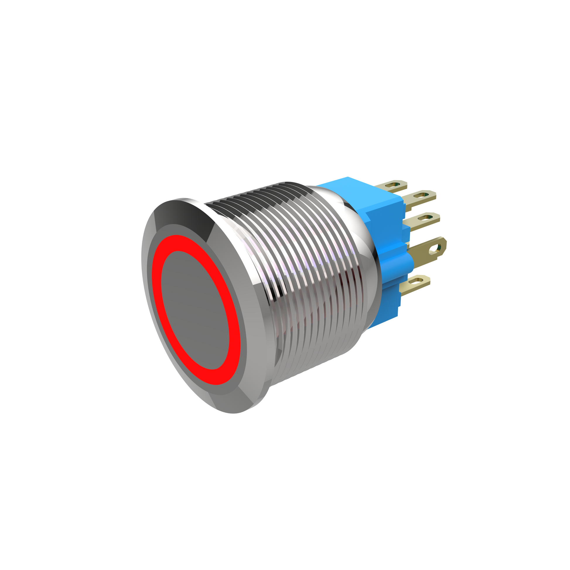 - Design: Metallic body with a bold red illuminated ring for quick identification and user response