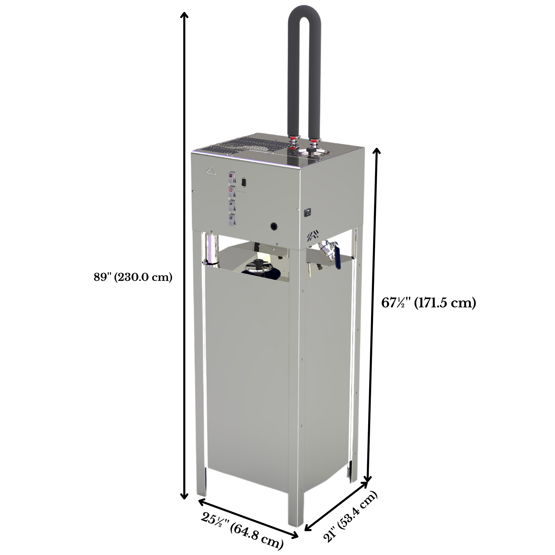 Engineered for performance and reliability, this 5100-watt small commercial water distiller is the perfect solution for businesses, clinics, or large households that demand a steady supply of pure water. Capable of producing up to 45 gallons of distilled water every 24 hours, it comes equipped with a 75-gallon stainless steel holding tank to ensure ample storage and uninterrupted access.